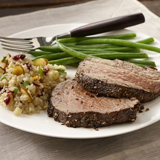 Peppercorn Herb Crusted Beef Tenderloin | Beef tenderloin from i.pinimg.com Try this meal for your next holiday get together. Roast beef tenderloin with pinot noir sauce. Remove the herbs, onion, and garlic from the sauce, then the sauce is ready to stand by for the beef. This begins with seasoning and slathering it with garlic and herbs for the perfect crust. Make sure to bring the roast back to room. A few recipes for crusted beef tenderloin go beyond just coating the meat in a paste and actually wrap the meat and the paste in bacon. Grilled tenderloin of beef with spicy fresh herb vinaigrette. Next time i am going to cook the green beans a little longer.